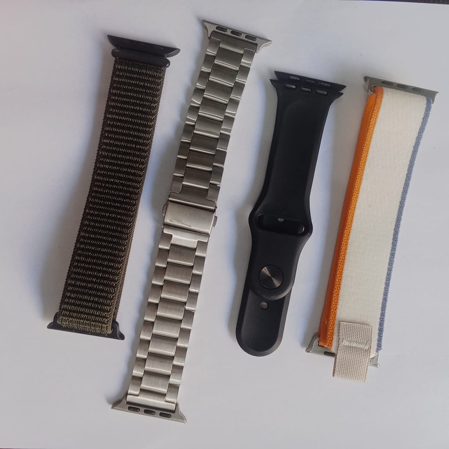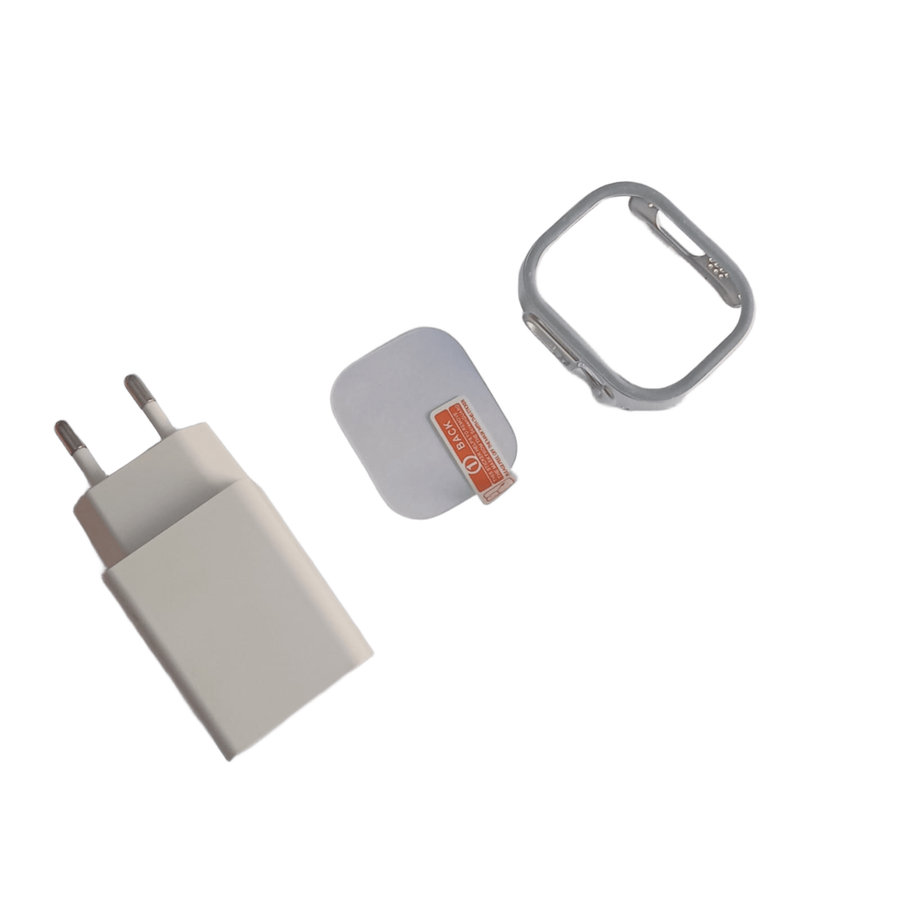 ✅ الساعة الذكية Ultra Pro Max بأحدث إصدار. ✅ 7 أستربات مختلفة الألوان والخامات عشان تختار اللي يناسب لبسك كل يوم. ✅ كفر حماية كامل ضد الخدوش والصدمات. ✅ اسكرينة قوية تحافظ على الشاشة من أي خدش أو كسر. ✅ رأس شاحن + شاحن مغناطيسي سريع.