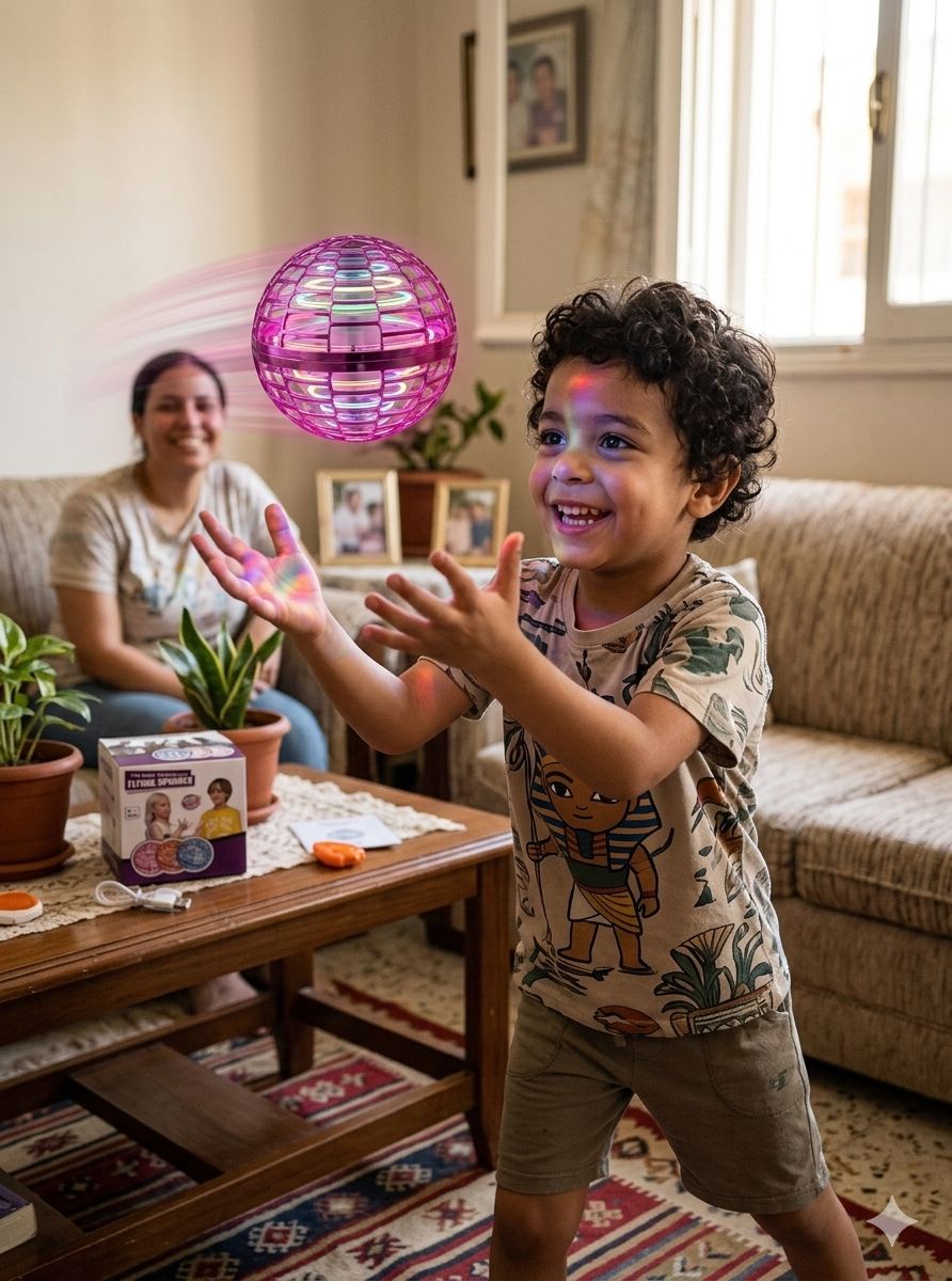 كرة بتنور بألوان جذابة بمجرد الحركة، بتخلي الطفل متحمس يلعب أكتر سواء بالنهار أو بالليل 🌙