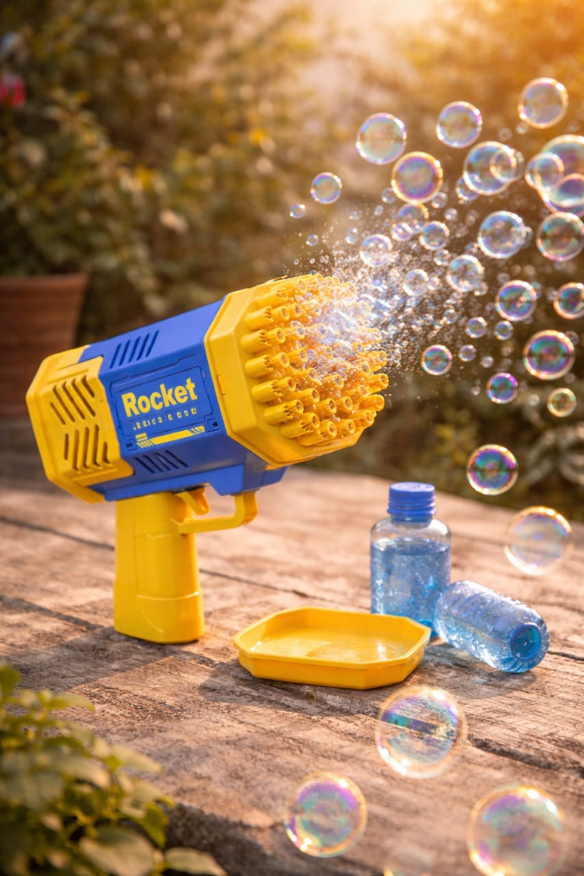 بضغطة زر واحدة فقط يبدأ المسدس بإنتاج مئات الفقاعات ليحول وقت اللعب إلى لحظات مليئة بالمرح.