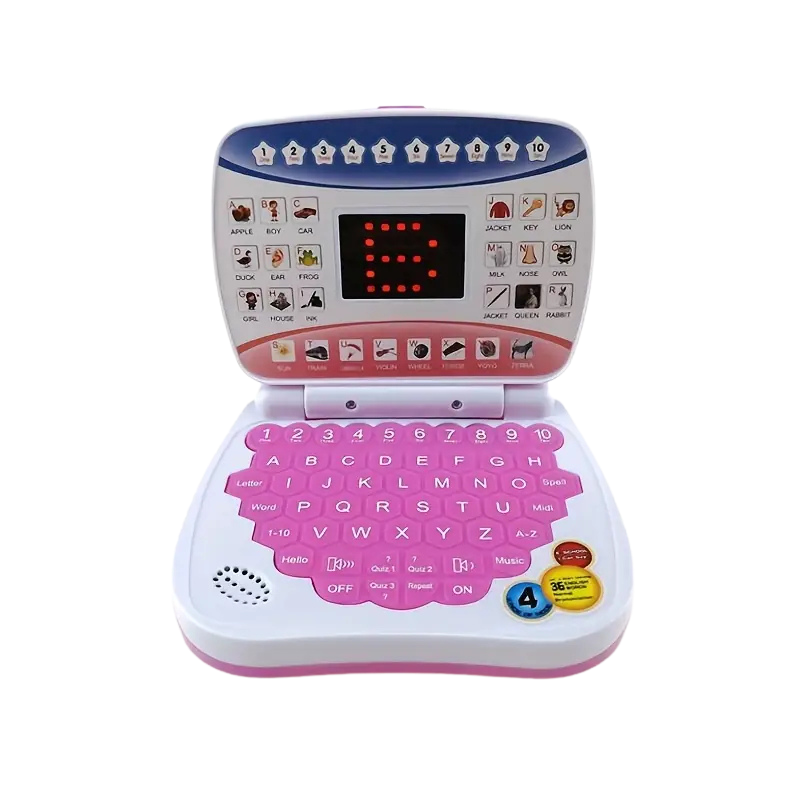 ينطق الحروف والأرقام مع كلمة على كل حرف لمساعدة الطفل على النطق الصحيح.